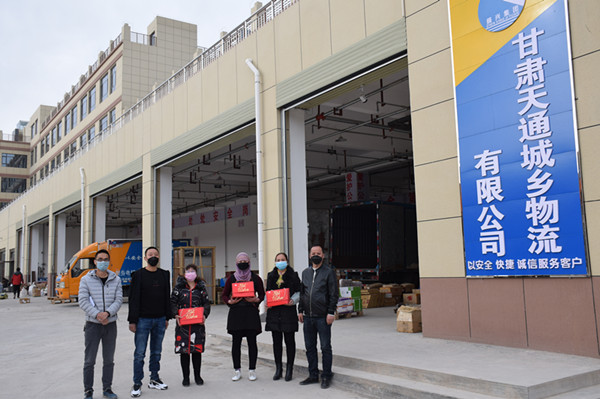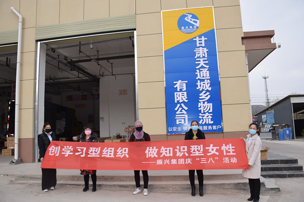 在慶祝三八婦女節(jié)儀式上,集團(tuán)公司副董事長鄭龍和副總經(jīng)理蘭小偉為全體女職工發(fā)放了福利并合影。